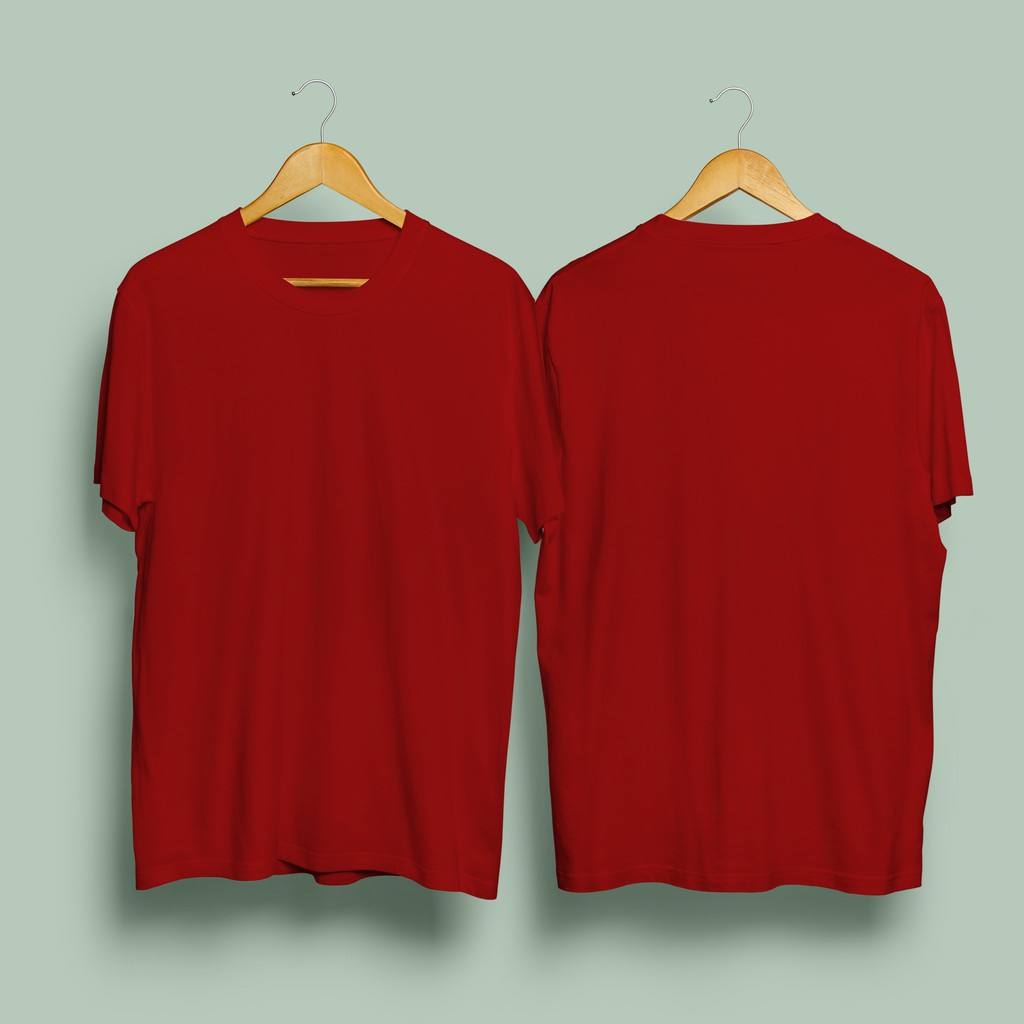 Desain kaos polos depan belakang warna merah maroon desain kaos polos. Dimulai dengan orang biasa sampai orang kaya raya atau populer sekalinya banyak yg memakai kaos polos.